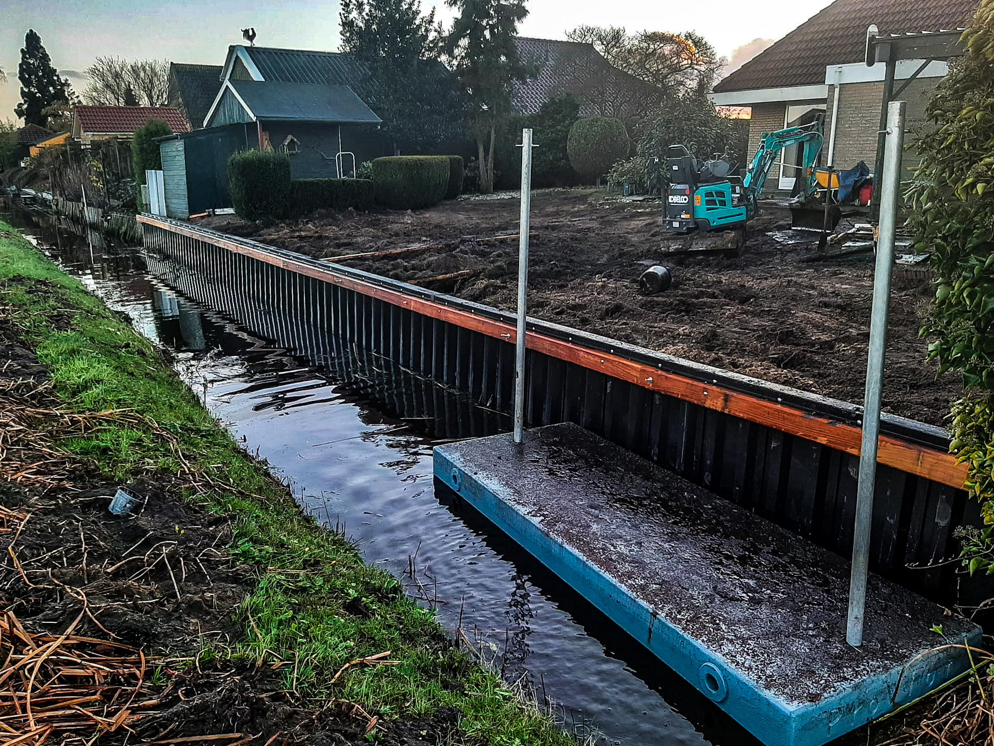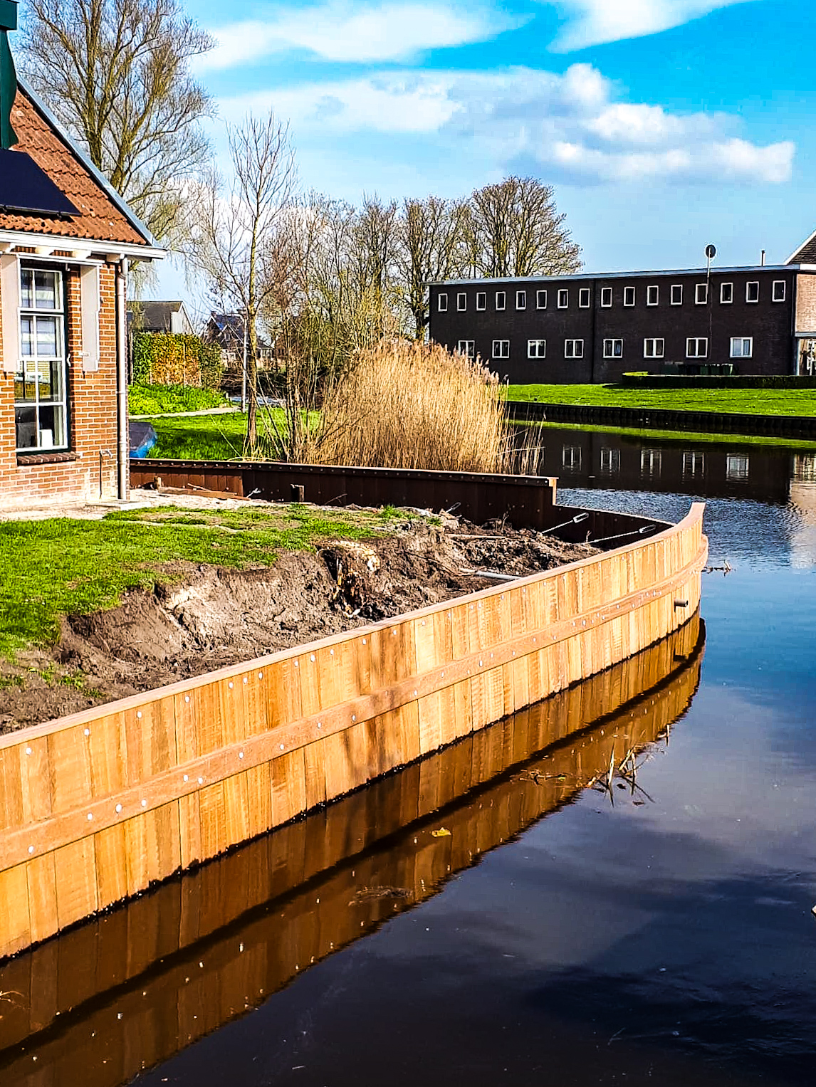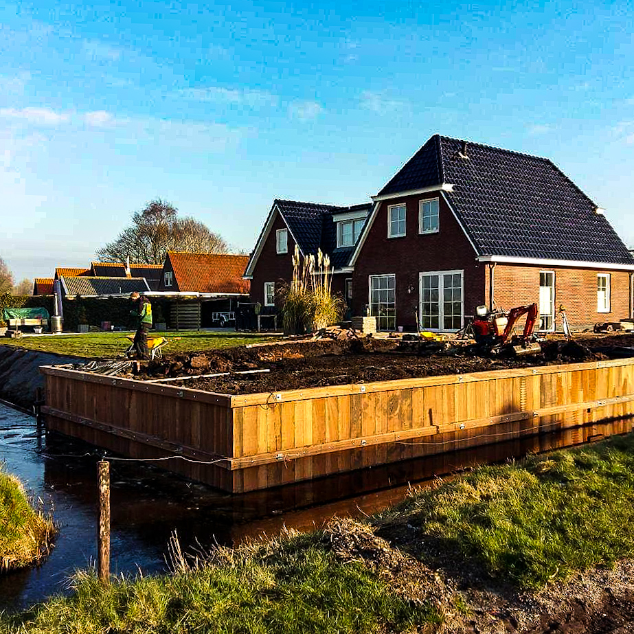 Onze ontwerpen voor walbeschoeiing worden afgestemd op zowel de praktische behoeften als dat het passend is voor de omgeving. Of u nu de voorkeur geeft aan een natuurlijke uitstraling met houten beschoeiing of een strakke, moderne look met beton, we zorgen ervoor dat het ontwerp harmonieert met de omgeving.